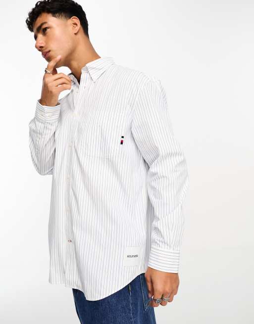 Tommy Hilfiger Camicia a maniche lunghe classica blu a righe ASOS