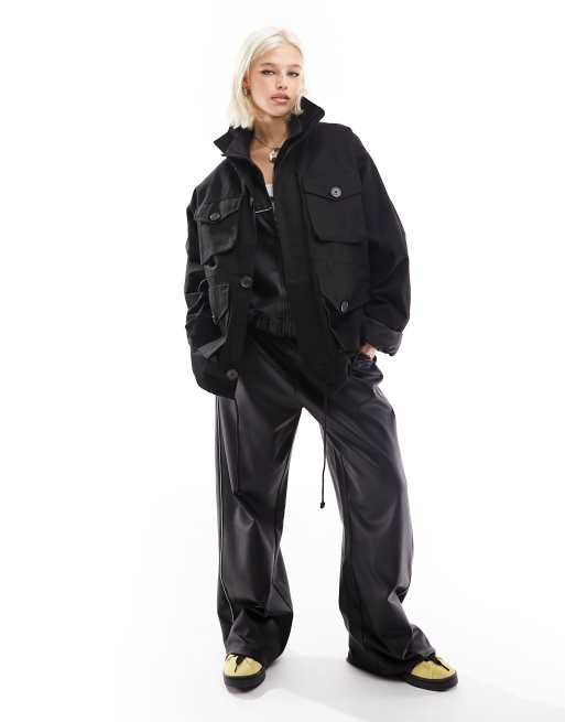 COLLUSION oversized utility cargo jacket shacket in black ASOS