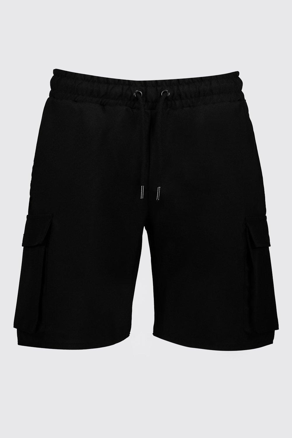 Charcoal Grey Drawstring Waist Cargo Shorts