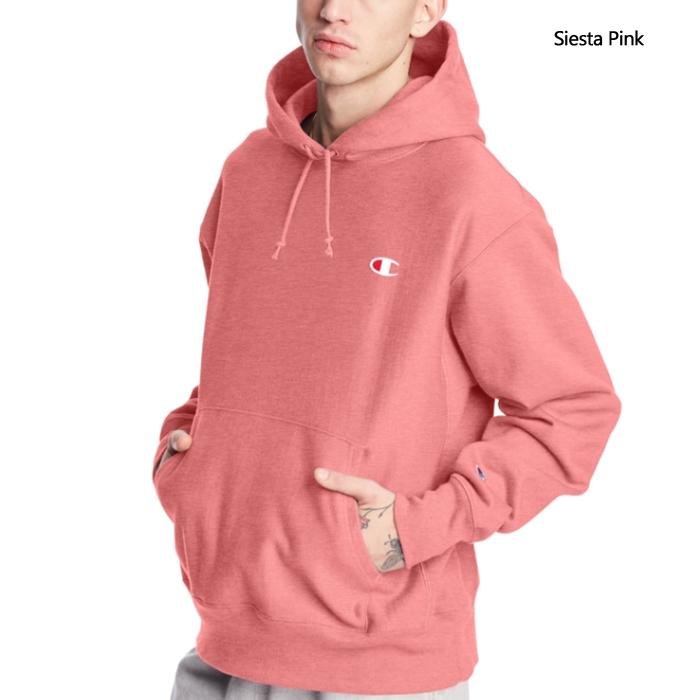 Champion Men s Relax Fit Reverse Weave Logo Hoodie Guava Pink